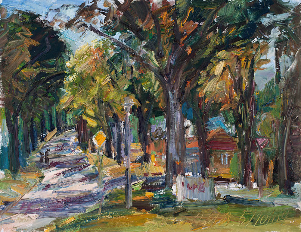 Dorfstraße mit Pappeln